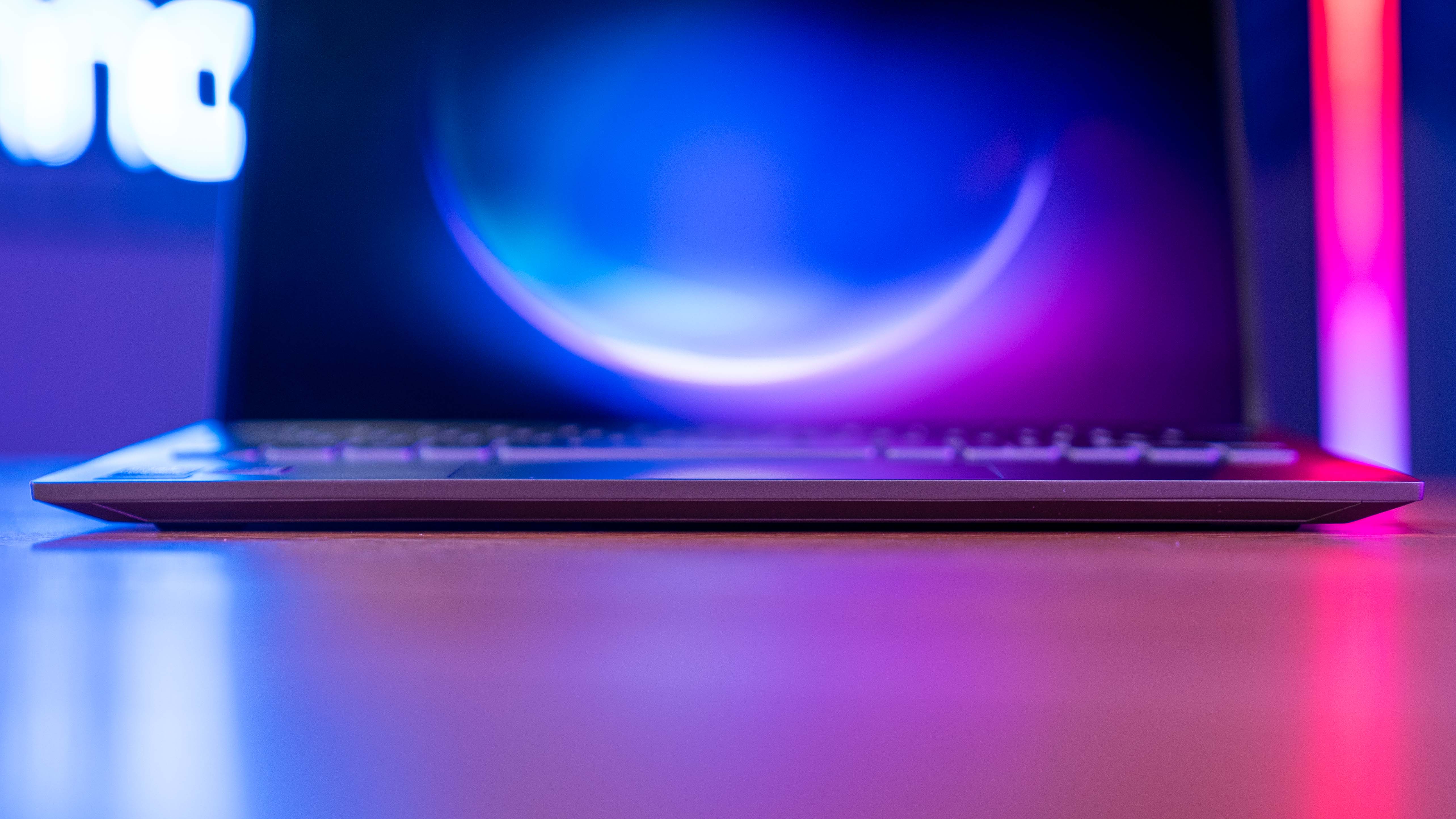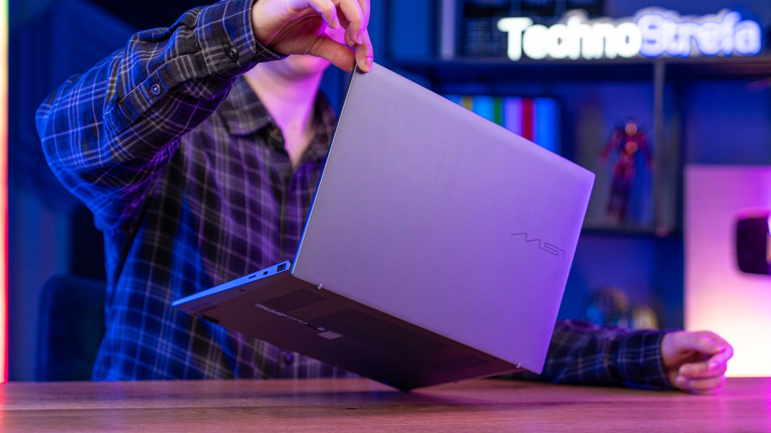 Choć nie jest to sprzęt gamingowy, technologia Intel XeSS Frame Generation pozwala na uruchomienie wymagających tytułów jak Cyberpunk 2077. Na ustawieniach średnich można liczyć na około 30 FPS. Należy jednak pamiętać, że smukła obudowa szybko akumuluje ciepło – po 20 minutach intensywnej gry górna część obudowy nad klawiaturą staje się wyraźnie gorąca pod palcami.