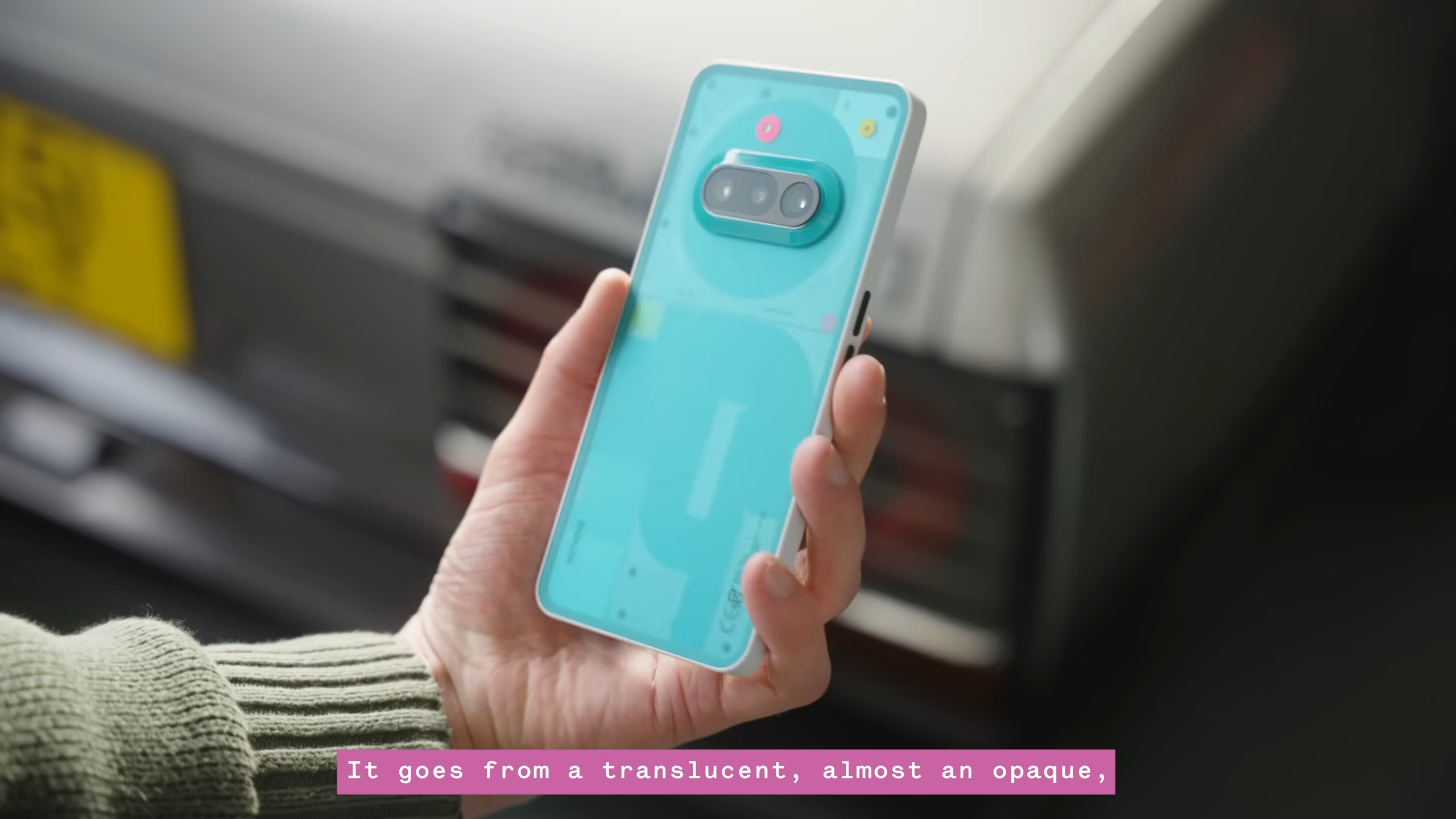 Warstwa wizualna urządzenia, zatytułowana „Translucent Memories”, to głęboki ukłon w stronę estetyki retro-futuryzmu. Obudowa otrzymała unikalne, niebiesko-zielone wykończenie typu teal, które daje efekt zamrożonej wody, w zależności pod jakim kątem się spojrzy na telefon. Dodatkowo w dużej mierze eliminuje problem odcisków palców. Inspiracją były przezroczyste obudowy kultowych konsol przenośnych, a efekt ten uzyskano dzięki zaawansowanemu procesowi piaskowania materiałów.