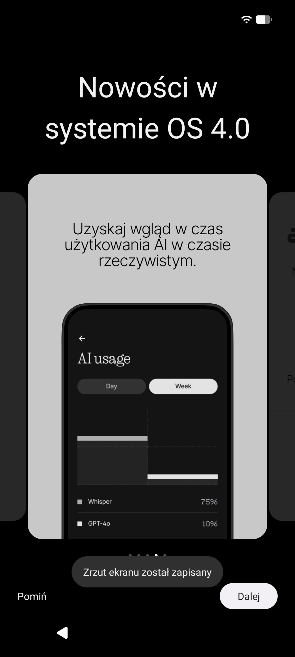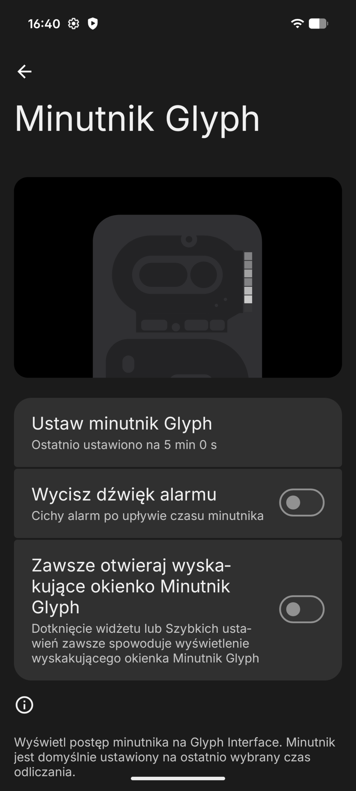 Całość interakcji uzupełnia interfejs Glyph, który okazuje się realną pomocą. Wizualizacja poziomu głośności czy paska postępu minutnika świetnie sprawdza się, gdy telefon leży tyłem do góry. Daje mi to niezbędny feedback i pozwala odnaleźć się w sytuacji bez konieczności ciągłego brania urządzenia do ręki.