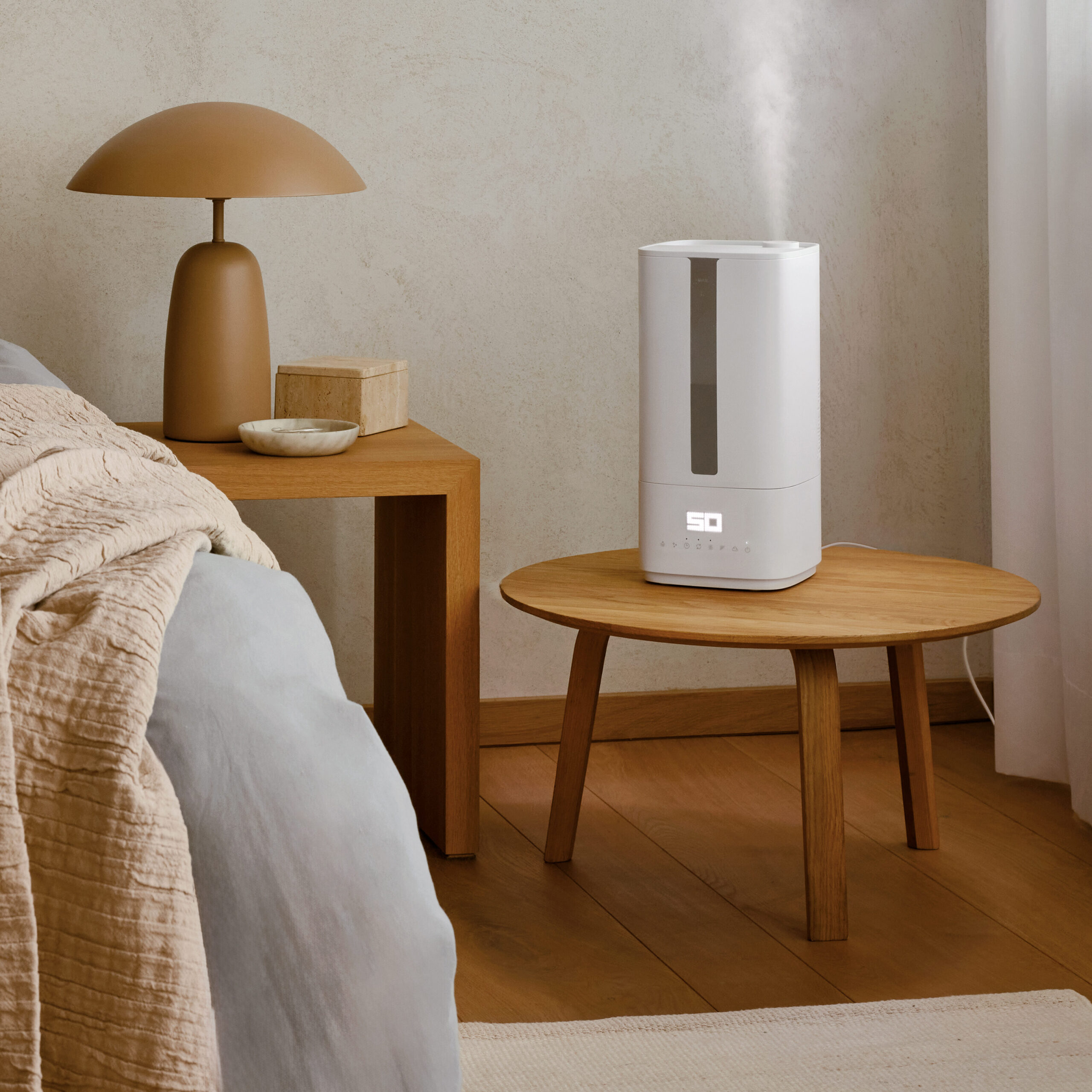 Dla zwolenników technologii ultradźwiękowej Stadler Form przygotował nawilżacz Oliver. Jego największym atutem jest bezkompromisowe podejście do higieny. Zanim woda zamieni się w widoczną mgiełkę, jest poddawana działaniu wbudowanej lampy UV-C, która eliminuje 99,99% bakterii, wirusów i grzybów. To gwarancja, że powietrze, którym oddychamy, jest nie tylko nawilżone, ale i czyste.